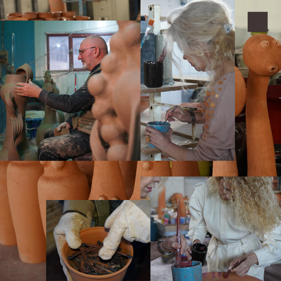 Together, the three have built a true creative laboratory, where ideas are born on paper, take shape in clay, are fired, and finally find their identity.