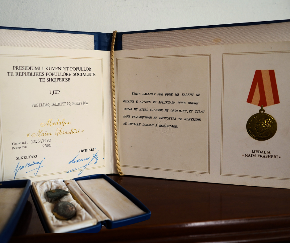 • “Naim Frashëri” Medal – Awarded by the Presidium of the People’s Assembly of Albania, for high artistic achievement in ceramic art