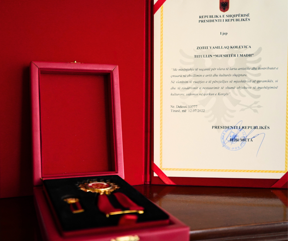 • Title “Grand Master” – Awarded by the President of the Republic of Albania, Ilir Meta, for outstanding contribution to figurative art and national ceramic heritage